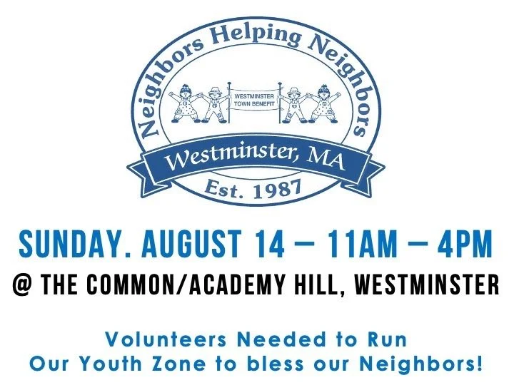 Be Sure to come out and support our Town’s Neighbors Helping Neighbors Benefit Day at Academy Hill, Westminster! Bread of Life is proud to provide a Youth Zone with Inflatables (Obstacle Courses, the Wrecking Ball, Hoop Mania etc!). All proceeds benefit our neighbors in need!