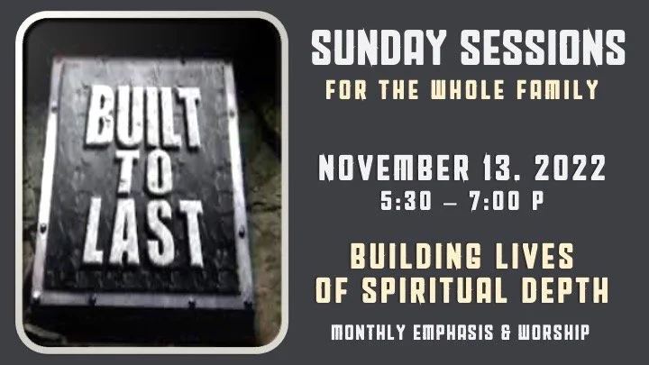 Back to All Events BUILT TO LAST SUNDAYS NIGHTS Sunday, November 13, 2022 5:30 PM 7:00 PM Google Calendar ICS