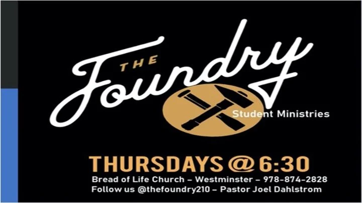 FOUNDRY YOUTH Thursday, June 9, 2022 6:30 PM Thursday, August 25, 2022 8:30 PM Google Calendar ICS FOUNDRY YOUTH Meets every Thursday night at the Church. During the summer though, contact Pastor Joel at the number below to see if there are any schedule or location changes for different activities!