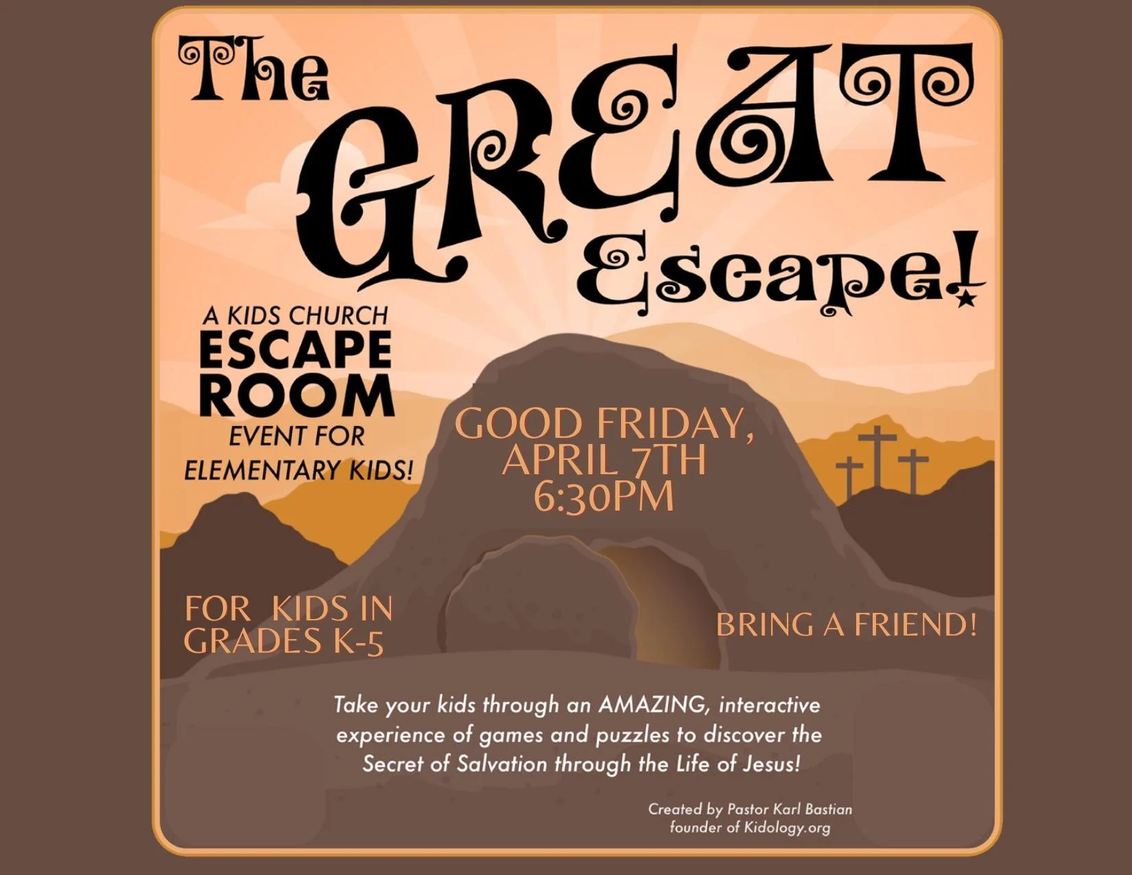 Back to All Events GOOD FRIDAY - KIDS EVENT! Friday, April 7, 2023 6:30 PM 7:30 PM Google Calendar ICS